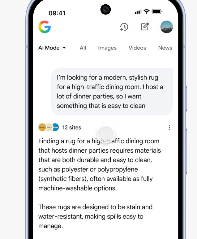 Ou seja: o UCP vai funcionar apenas no AI Mode do Google e no aplicativo do Gemini. Não há anúncios sobre seu funcionamento dentro do AI Overviews, que fornece respostas dentro da SERP padrão.